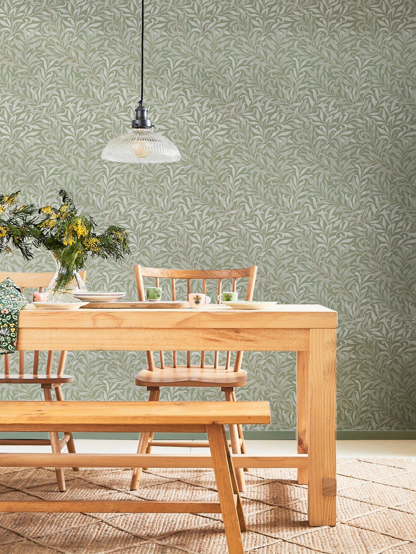 William Morris At Home William Morris Willow Bough Sage Wallpaper This Iconic Pattern Forms A Part Of The Gallery'S Collection In Earlier Printed Chintz And Wallpaper Lengths. The Design Is Based On The Natural Willow Form Which Was One Of William Morris' Favourite Motifs. Originally Designed By William Morris As A Wallpaper In 1887 And Adapted For Fabric In 1895, It Is Block Printed In A Diagonal Branch Pattern At Merton Abbey And Combines Abstraction With A Gentle Reminder To The Outdoors. Willow Bough Sage Creates An Atmosphere Of Elegance With Trailing Leaves In A Soft Off White, Light Grey And Sage On A Muted Light Olive Background. This Matt Finish Wallpaper Creates A Calm And Quaint Feel, Making It A Lovely Addition To Any Home. Depth: 7 Cm Height: 10 M Material Content: Paper Width: 52 Cm Paste The Wall Suitable For Living And Bedroom Areas On-Trend Design Spongeable Strippable