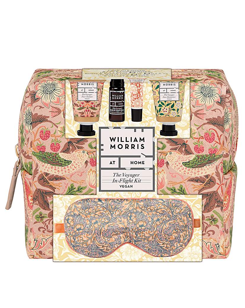 A Strawberry Thief Print travel wash bag containing five self-care essentials to make your flight more comfortable. With face cleanser, face moisturiser, body and space mist, lip balm and a soft velvet eye mask, this set is perfect for the long haul voyager. Each product is scented with Iceland 1871, an uplifting, balancing fragrance inspired by William Morris's voyage to the Nordic island. Think fresh, grounding notes of bergamot, orange blossom, patchouli and leather. Packed with skin-kind ingredients, the gentle face wash, face moisturiser and lip balm are enriched with hydrating vitamin E, bergamot and sweet orange essential oils to cleanse and protect skin and lips. A Body & Space Mist is on hand to refresh and the Batchelor's Button print eye mask is crafted from soft velvet to aid shut-eye. William Morris At Home is a collaboration with the not-for-profit William Morris Gallery. Every purchase will help support The Gallery bring the life and work of the visionary artist to future generations. Cruelty free and vegan friendly.