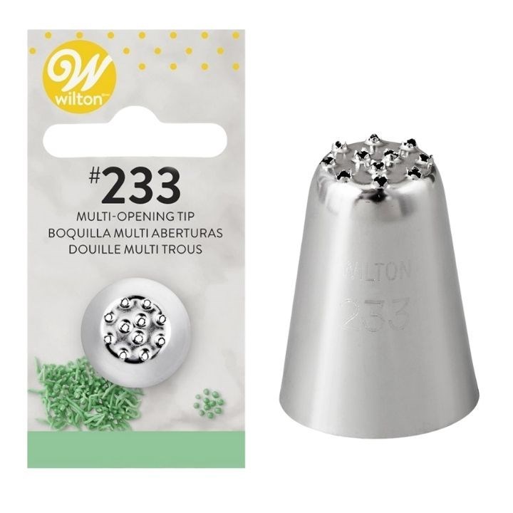 This multi-opening decorating tip by Wilton is great for character cakes and cupcakes as it pipes multiple pull-out lines used for hair and fur.