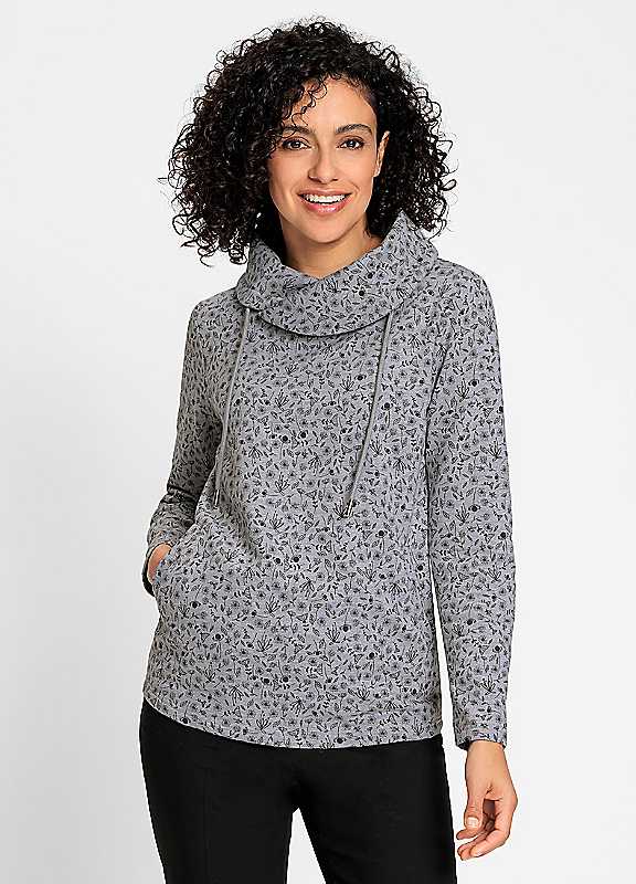 This OCS-certified cotton sweatshirt boasts a stunning floral print, long sleeves, and a cosy cowl neckline. With a brushed inside, it's snug, soft, and warm. Plus, it has 2 front pockets for added functionality.Machine washable60% Cotton, 40% PolyesterLength approx. 66 cmPlease Note: European sizing tends to run smaller than UK. We suggest sizing up for the perfect fit!