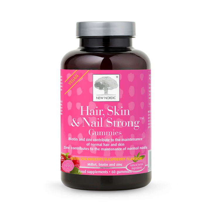Hair, Skin Nail Strong™ Gummies are a delicious and tasty food supplement with a high content of biotin, millet and zinc, with a strawberry and raspberry flavour. The content of biotin and zinc contributes to the maintenance of normal skin and hair. Zinc also contributes to the maintenance of normal nails. • BIOTIN: Contributes to the maintenance of normal skin and hair. • ZINC: Contributes to the maintenance of normal nails. • GUMMY: Easy and convenient form.