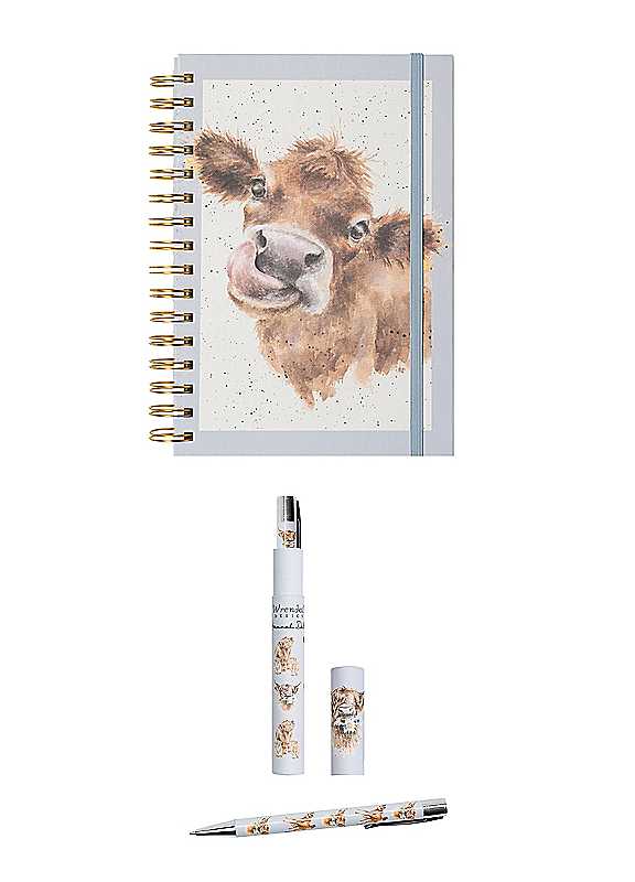 Wrendale Designs A5 Cow Notebook Mooo Blue & Cow Pen