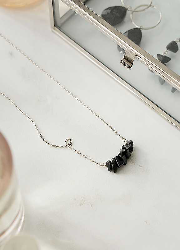 Lovingly handmade in small batches by our talented in-house jewellery makers, this gorgeous crystal necklace is made using high-quality Black Obsidian crystal chips and is hand-finished with 925 sterling silver findings + chain. Each piece is completely unique due to the natural crystals used and will be completely individual to the wearer. Black Obsidian is a truth-enhancing stone. Black Obsidian is also a protective stone, and it can be used to block negative energy in the around you.Black obsidian crystal stimulates growth and is said to open new horizons for the wearer. Black Obsidian is said to bring clarity to the mind and helps clear confusion. Black Obsidian can also be used to dissolve emotional blockages and can help with clearing past traumas while promoting compassion and strength in the wearer. This item of jewellery by Xander Kostroma will be intuitively chosen prior to being shipped. Each piece will come lovingly gift-wrapped ready to give to a loved one or to keep as a treat for yourself. Brand: Xander Kostroma