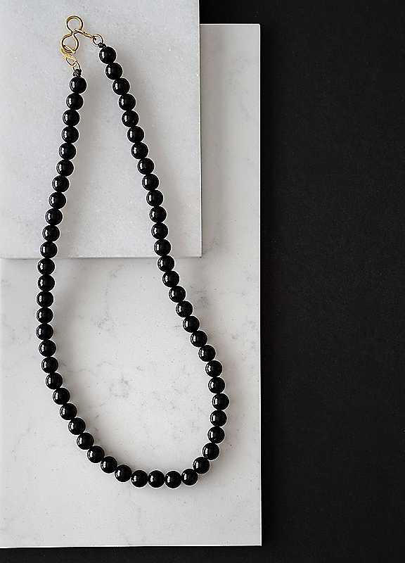 Brass, Black Onyx, Cotton handmade in small batches by our talented in-house jewellery makers, this men's crystal necklace features polished Black Onyx with a brass clasp to close. Our premium crystals are fairly sourced and made of the highest quality. Our jewellery is certified to be lead, cadmium and nickel-free. This designer men's crystal bracelet by Xander Kostroma will come gift-wrapped in a branded Xander Kostroma gift box (as shown) ready to give to a loved one or to keep as a treat for yourself. Black Onyx is thought to have protective qualities making it advantageous when travelling. Black Onyx crystal is said to be the perfect stone to use to combat your fears. It can help the wearer to move beyond bad relationships while helping to heal old wounds.Brand: Xander KostromaHandmade, gift-wrapped, Unique design | crystal necklace for men, black onyx necklace, onyx pendant necklace, brass chain necklace, onyx beaded necklace, handmade beaded necklace