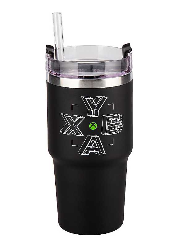 Stay hydrated all game long when you sip from this Xbox Gamer Cup. With a multi-way lid, straw, and narrow base for cup holders, keep the travel cup by your side for sipping all day long. The 600ml (20 fl oz) black insulated soft-touch travel cup will keep your drink cold or hot for hours. Its versatile multi-way lid has three convenient positions: a sealed straw opening, an easy-sip option, and a cover top for when you're on the move. The narrow base is designed to fit snugly into cup holders.Not suitable for dishwasher or microwave use.Keep the Xbox Gamer Cup always by your side for sipping throughout the day. | drinking cups lids, coffee cup warm, insulated cup lid, plastic drinkware, reusable plastic drinkware, travel cup lid, thermal cup lid, insulated drinking tumblers, cups keep cold
