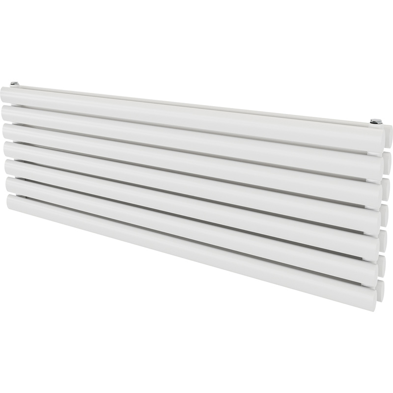 Stylish designer radiator with modern oval design. Steel construction with high quality pre-treatment and powder-coated finish. Easy to install, wall fixings, plug and vent included. 10 year manufacturer's guarantee (T&Cs apply). * Connection size: 1/2" * Heat output calculated at Delta T50degC * Pressure tested to 13 bar, max working pressure 10 bar * Max working temperature: 120degC * Manufactured and tested to EN-442 * Projection from wall: 102 mm; wall to centre: 62 mm Dimensions are height by width. | Ximax Bristol Double Horizontal Designer Radiator 410 x 1200mm 3034Btu in White | Steel