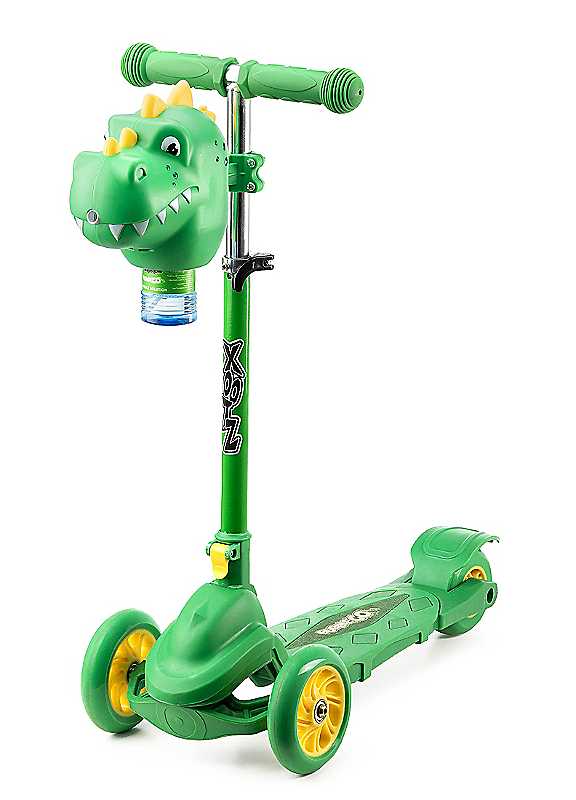 Unleash the roar of adventure with the Xootz Bubble Go Dinosaur Scooter, the ultimate ride for little explorers who love all things prehistoric! This dino-themed scooter turns every outing into a Jurassic journey, releasing a stream of bubbles from its friendly dinosaur head bubble machine. With its bold green and yellow design, this scooter is sure to make your child the king or queen of the 'bubble jungle.' The fun starts with the press of a button - just fill the dinosaur bubble machine with bubble solution and watch as your young rider leaves a trail of bubbly excitement behind them. Whether it's a race across the park or a roaring adventure in the garden, the Bubble Go Dinosaur Scooter makes every ride feel like a thrilling expedition through dinosaur territory.Designed for action-packed fun, this scooter features a lightweight, foldable frame that's easy to carry and store after the adventure ends. Its three-wheel design offers extra balance for young riders, and the non-slip foot deck ensures a sturdy, secure ride over smooth pathways and wild terrain alike. Perfect for children aged three and up, the Xootz Dino Roar Bubble Scooter is a gateway to imagination, activity, and outdoor play. Your little one will love stomping and scooting like a dinosaur, leaving a cloud of bubbles in their wake and making memories that will last a lifetime.