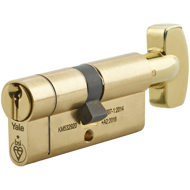 * 1 Star security – TS007:2024 rated and endorsed by the Police’s Secured by Design scheme * High protection – built-in anti-snap, anti-pick, anti-drill and anti-bump features * Sacrificial break-line – designed to defend against snap attacks * Patented key design – prevents unauthorised key cutting * Fire rated – suitable for FD30 and FD60 fire doors * 10-year guarantee – for peace of mind "The KM Series 1 Star Cylinder delivers high-performance security, designed and tested to Yale’s exacting standards. It offers defence from a range of known methods of attack and is accredited to the British kitemarked TS007-1:2024 1 star standard. This cylinder is suitable for PVCu, timber and composite doors. It includes 3 Yale-authenticated keys with a modern bow design for better grip. The patented key design means they can only be duplicated by authorised partners, keeping your home secure. This product can be combined with Yale 2 Star door furniture to represent a fully accredited TS007 3 Star solution. It is supplied with a 50mm retaining screw. * 1 Star security – TS007:2024 rated and endorsed by the Police’s Secured by Design scheme * High protection – built-in anti-snap, anti-pick, anti-drill and anti-bump features * Sacrificial break-line – designed to defend against snap attacks * Patented key design – prevents unauthorised key cutting * Fire rated – suitable for FD30 and FD60 fire doors * 10-year guarantee – for peace of mind * Multiple options available – choose from various sizes, finishes, and thumbturn models. | Yale 1 Star Euro Thumbturn Cylinder 40-40mm in Brass