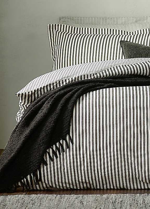 Yard Hebden Stripe Black 100% Cotton Duvet Set - Size Super King