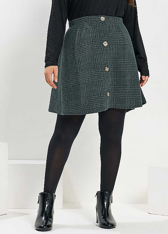 Yours Curve Check Button Front Mini Skirt - Green - Size 26/28