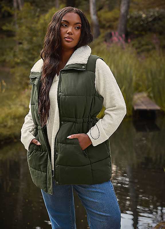 Stay warm and stylish in this padded gilet. Made from a comfortable woven fabric, it features a cosy teddy borg collar for added comfort, an adjustable toggle waist to fit to your shape and two side pockets. Simply team with your favourite jumpers for a look that is perfect for layering on chilly days.Machine washable100% Polyester