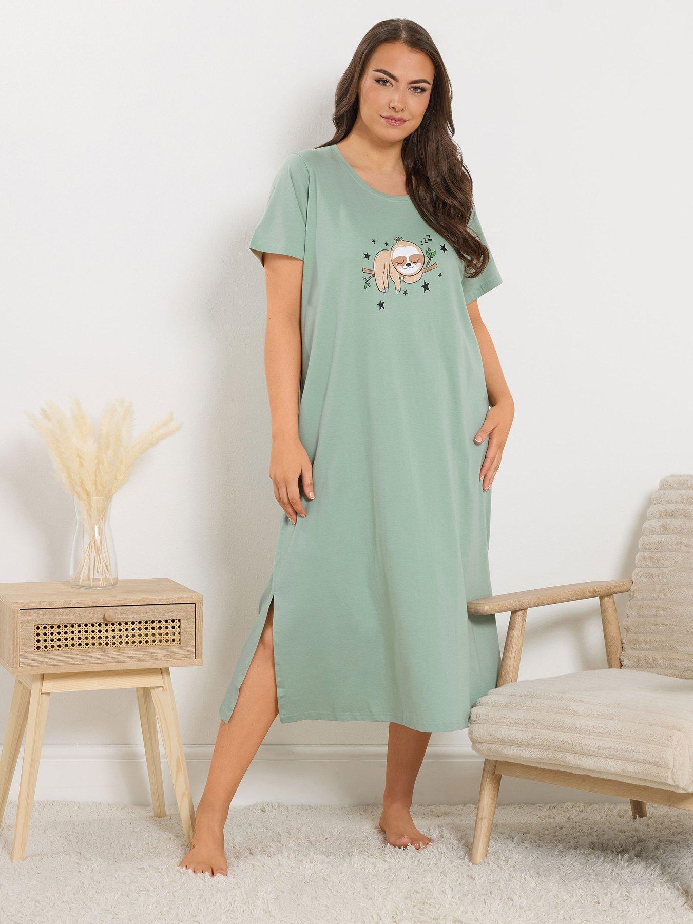 Yours Curve Sloth Midaxi Nightdress Size & Fit True To Size - Order Your Usual Size Relaxed Fit Midaxi Length Available In Sizes 14 - 40 Details Curve Sloth Midaxi Nightdress By Yours Green Single Short Sleeves Scoop Neck Graphic Print Pull On Fastening