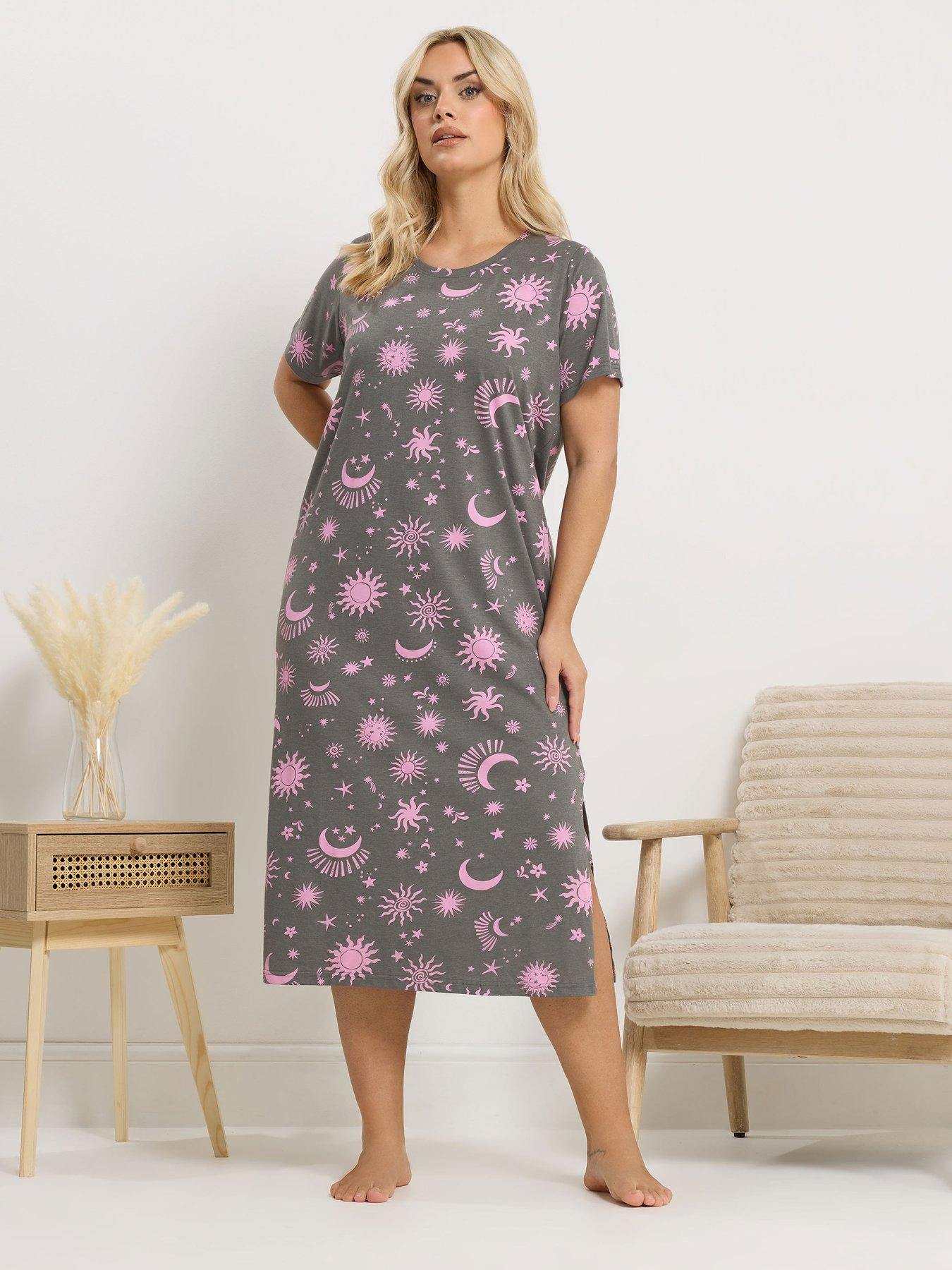 Yours Curve Solestial Midaxi Nightdress Celestial print, Short sleeves, Crew neckline, Split hem, Made from a soft cotton blend fabric, 60 cotton, 40 polyester, Length from approx: 123cm/48.4, Machine washable