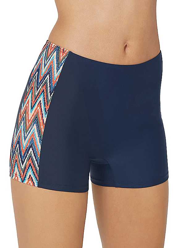 Perfect mix and match item for your swimwear collection! Sporty swim short with a lovely colourful zigzag pattern on the sides. Washable 80% Polyamide, 20% Elastane