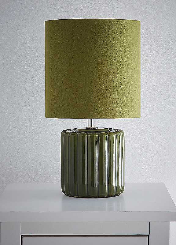 This Modern Ceramic Table lamp is a wonderful addition to any room. It comes with a matching Velvet shade and hold a thick chunky base with straight and narrow brick design encompassing the base.90% Ceramic, 10% Cotton ShadeLength approx. 32.5 x 18 cm | bedside table lamps, modern table lamp, hall table lamps, table lamps living room